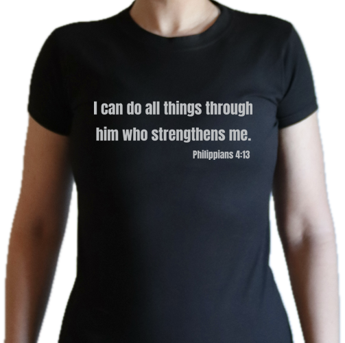 Philippians 4:13 "I can do all things through him who strengthens me." slim fit shirt.